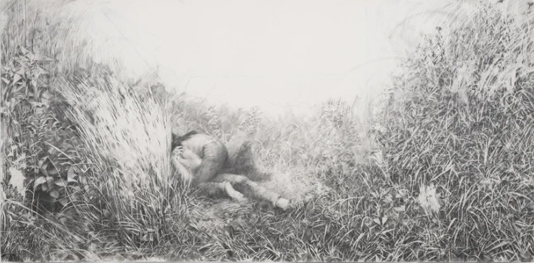 These pieces are all so pleasing to view. Despite each one being a landscape all of them share different qualities which make them more unique. I also really love how detailed the landscapes are and how her works usually have a added element to it. Such as the white erasure in the first one or the figure in the third. My favorite of the three is probably “The World Without Us,” because the work is beautifully drawn to show the realistic leaves yet also showcases a disruption between them which is meant to represent human impact on nature. I also really interesting in the graphite medium which is why I chose this artist. As well as her art style intrigued me and I hope to use some of it in my own work.